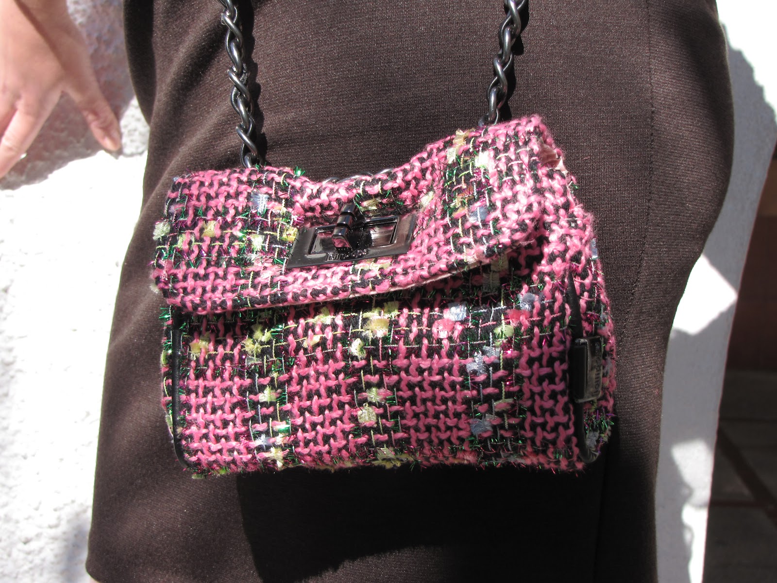 | El minibolso de tweed fue un regalo de mis amigas. Tienen un gusto exquisito. |