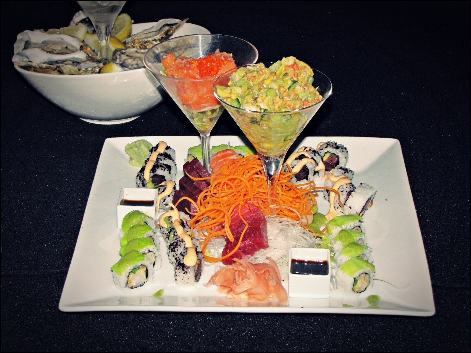 – In the table reserved for the press we had champagne, oysters and sushi (among other foods)