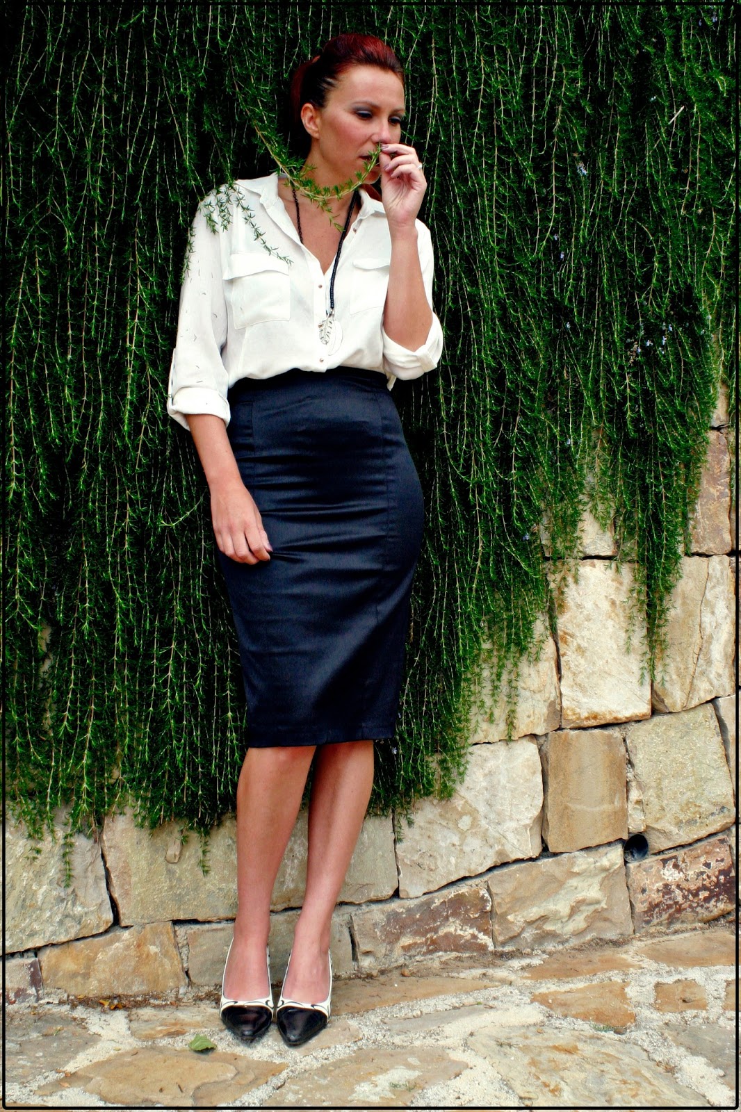 Yo opté por falda de tubo en raso, camisa blanca y el pelo recogido en una cola de caballo. Más sencillo; imposible y no me digáis que no es un conjunto resultón.