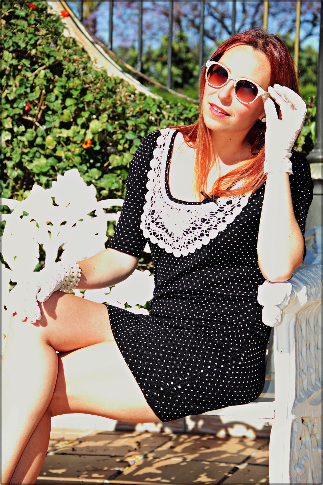 Bueno, y una vez ya calmada mi desazón, centrémonos en el outfit de hoy. Tuve una comunión el sábado pasado y quería optar por otro look que no fuera el típico vestidito de gasa. Así que vi la oportunidad perfecta para estrenar este vestido de punto tan lady y; llamadme exagerada, pero ya que optas por ir de un estilo, abrázalo con todas las consecuencias. Conviertelo en una performance. Como se nota que mi diseñador fetiche siempre ha sido Alexander McQueen. Así que me planté mis zapatos retro, mis perlas y mis guantes de encaje. Ya que iba de comunión…..»Con la iglesia hemos topado, amigo Sancho»